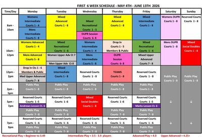 Please ensure that you have an account with CourtReserve and DUPR. You will need these to book courts and events.